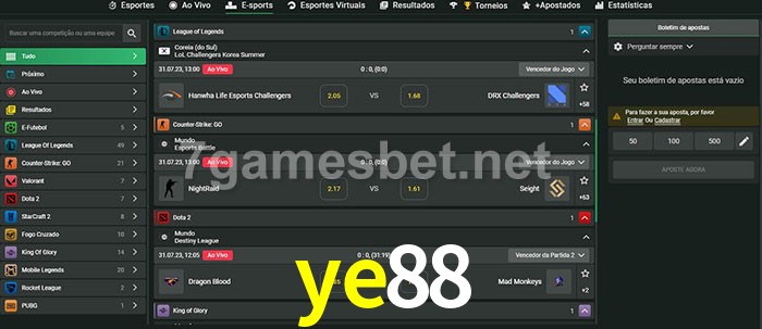 O ye88 oferece uma grande seleção de opções de apostas em e-sports com probabilidades competitivas